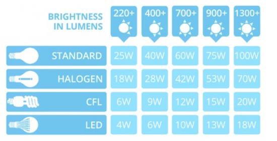 Practically all bulbs are now available as LEDs including fancy ones with mock filaments. The table above (from The Lightbulb Company) shows you how to buy the right brightness using lumens.