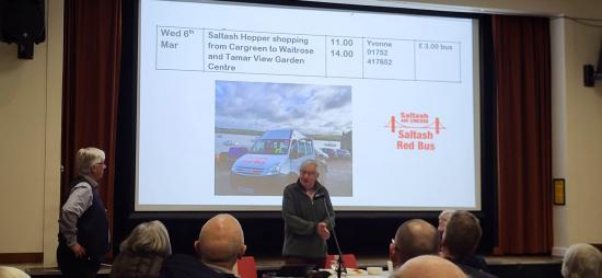 - Mike Finch from Saltash Red Bus explained how this service has grown and now provides all kinds of bus services (including Landulph School bus, 452/454, and now the Wednesday Hopper Shopper bus)