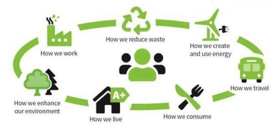 To become carbon- neutral we need to reduce the amount of carbon dioxide we produce and capture the carbon dioxide we do produce to prevent it entering the atmosphere. In this way our impact on the planet will support a positive future for everyone. To achieve this target, businesses, residents and organisations in Cornwall need to work in partnership with Cornwall Council to tackle carbon emissions in the areas illustrated in the diagram above.