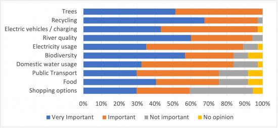 The Climate Action group has celebrated its first year, one of intense activity. Set up by the Parish Council in response to the County Council's declaration of a climate emergency, it is made up of a mix of Parish Councillors and interested parishioners. The Group has produced regular articles for the Newsletter and webpage and manned a stall at the Landulph Celebrates day and the Christmas Craft Show. The group has highlighted ways in which we can all make a difference to climate change. It has also conducted a survey of parishioners concerns over climate change, the results of which are shown below.