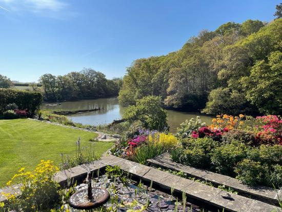 Although there are beautiful uninterrupted views over the creek, the new little garden was a problem as it was on a pretty steep slope and tricky to tend safely. So Glyn and Steve terraced it beautifully, producing a small horizontal lawn suitable for a robot mower, plus stone walled terracing, a gravel garden area, then a wilder slope down to the creek. We recreated many of our favourite features - standard roses for eye level colour (and kinder to the knees), a wisteria clad pergola, Trachelospermum on the walls, a pond with water lilies and pickerel. Raised beds for ease of access and allow us to add better quality soil as the mix of shillet and clay is not ideal. We’re delighted with the result. it gives year round interest and colour, and is pretty easy to maintain.