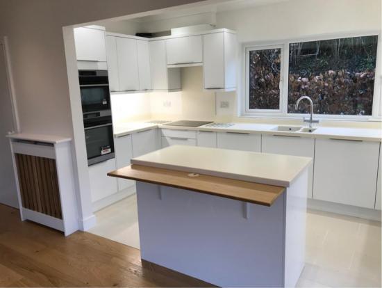 All this was during Covid, but the silver lining meant that Jason Reep was unexpectedly available and able to work on the empty property, replacing just about everything. New windows, French doors, floors, staircase, built in cupboards and wardrobes, shower rooms, kitchen, central heating, extensive insulation, plus PV panels and batteries. With his help, ideas and expertise, we have ended up with a very compact, low maintenance, light, bright, cosy, open plan home.