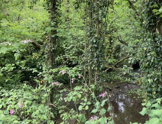 Steep, deep green and secret – that’s how temperate rainforests are imagined. Landulph is lucky: ours are easy to find and easily accessible. Landulph has all the ingredients needed for a rainforest to flourish; a warm south-westerly prevailing wind keeps our temperatures comparatively high throughout the year. We have a notoriously high rainfall, keeping our multitude of springs running through most of the year. You can find seepage from those springs almost everywhere from the high ground down towards the watercourses. Those watercourses have cut deep hollows into the ground and if the greenery in those hollows has remained untamed for a long time, there’s the chance for a rainforest to grow.