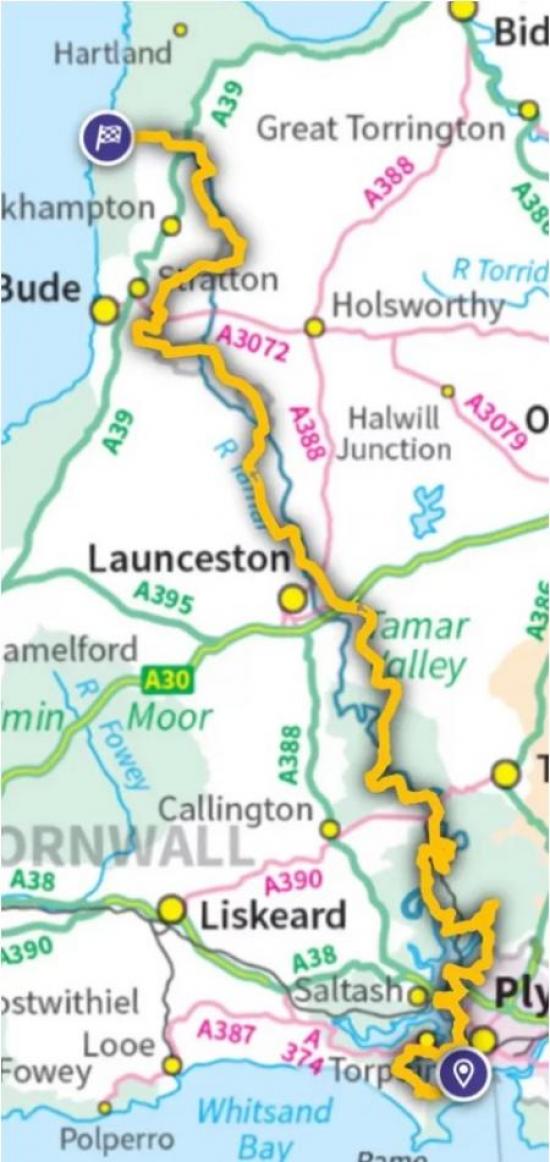 A new long distance path opened in July 2023 – it follows the Tamar from Plymouth to its source and then onto the Cornish-Devon north coast border. The route is 87 miles long and is divided into 7 stages using some existing paths on both the Cornish and Devon banks. One of the challenges for the designers of this path have been the limited crossing points in the lower reaches of the Tamar. At Calstock the main route crosses from Devon to Cornwall using the train! (But this has now been replaced by a foot ferry).
