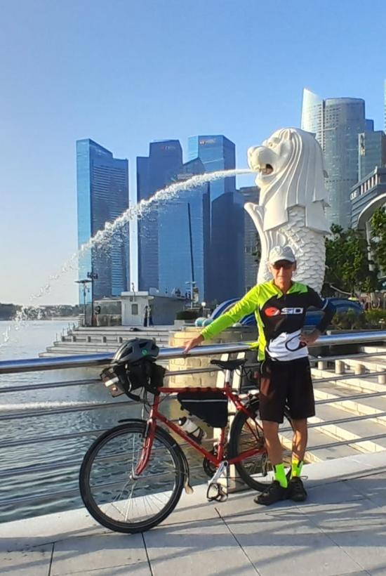Feb 17: Johor Bahru to Singapore (34 km)Across the causeway. We have arrived, journey's end. 2600 km in total. 08/01/24 to 17/02/24.The Merlion - The Merlion is a mythical creature and symbolises Singapore's origins. The head represents the citiy's original name Singapura.