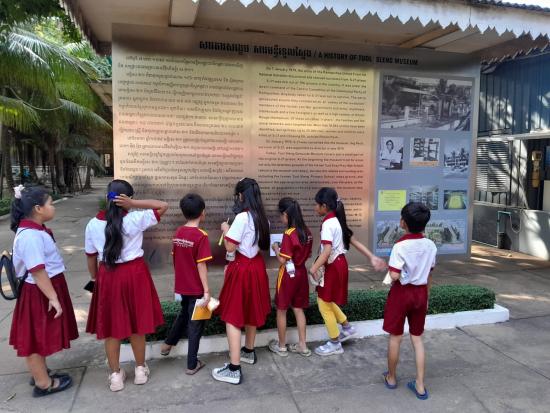 13 Jan: Phnom Penh (0 km)School children visiting the memorial to all those who were executed by the Khmer Rouge and imprisoned/tortured in the notorious S21 prison formally a school. The Khmer Rouge regime came to an end in 1979.