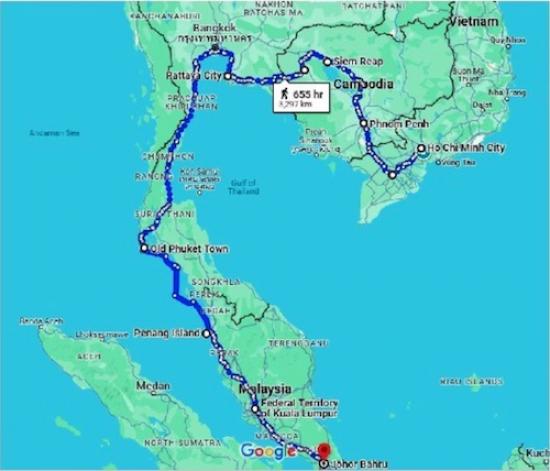 Peter Booth of the 3skinnybikersBetween 8 Jan 2024 and 17 Feb 2024, Peter, who lives in Landulph and is one of the 3 skinny bikers cycled 2600km from Ho Chi Minh City to Singapore for fun (!) and to raise funds for Landulph Orchard Green. The Just Giving page has so far raised 335 pounds - this will go towards developing Duke Orchard including a shelter against all the rain and a composting toilet.The 3 skinny bikers are all retired gentlemen with wanderlust in their DNA. Bob and Richard have worked as surveyors in the Far East for many years and Peter in the UK as lecturer in art and design. They first got together in 2010 to cycle from Hanoi to Saigon (Ho Chi Minh City) and since then have been reunited for similar adventures in Thailand, Cambodia, Myanmar and Europe. Richard is the 'path finder' and route planner with Bob and Peter in support keeping an eye on Richard's appetite to 'boldly go' into the unknown. They aim to have adventures, eat the local cuisine, soak up the culture and find out how the countries they cycle through 'tick'.Ride on! Bob, Richard and Peter. Follow their adventures below.Their journey took them from Ho Chi Minh City in Vietnam, through Cambodia and Thailand and into Malaysia to Singapore. Sometimes they took a train, bus or ferry and cycled through some beautiful countryside, meeting some smiling locals and sampling some interesting food. They were tracked on their route by the children at Landulph School.In total the ride raised £335 for Landulph Orchard Green. This project is almost entirely funded by grants and donations so the LOG Working Group are very grateful to Peter and his fellow riders.