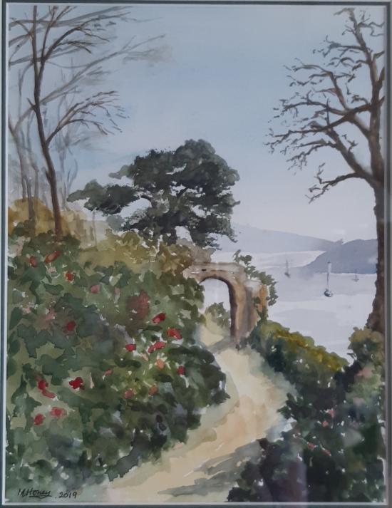 I have tried to learn the art of water colour painting. I used to dabble with oils but wanted to learn something new and have enjoyed the process.  I like to be inspired by local scenes and this painting is the view down to the River Dart from the grounds of Greenway National Trust house.