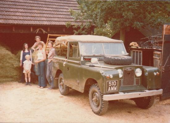Before we had a baler we used to make the hay in the old fashioned hard labour way, with hay rakes and pitch forking the loose hay up into our multipurpose trailer, pulled by the Land Rover, to transport it to the barn.  Any available friends and family usually came and lent a hand to get it in.
