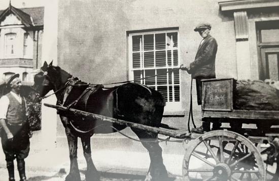My father Fred and brothers ran the corn merchants' business here on the quay and had a coal yard below the Spaniards pub. The business had a big sign on the quay: 'J.G Hosking and Sons'. On the death of my grandfather the sons continued the business and in the early days by horse and wagon (I have a picture of my father and grandfather with the wagon outside Southwark).