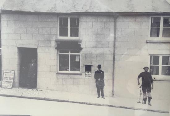 Mr, Herbert Braund with a salmon, outside the old Post Office, Fore Street, Cargreen.