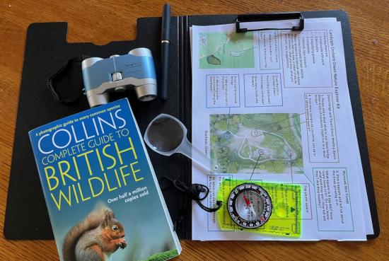 The Nature Explorers Kit is a bag of things to help children explore nature. It can be borrowed free of charge from Landulph Climate Group.